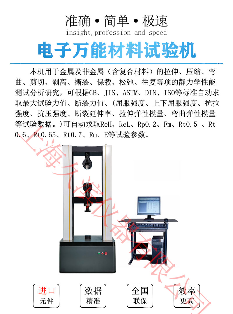 本機用于金屬及非金屬(含復(fù)合材料)的拉伸、壓縮、彎曲、剪切、剝離、撕裂、保載、松弛、往復(fù)等項的靜力學(xué)性能測試分析研究,可根據(jù)GB、JIS、ASTM、DIN、ISO等標準自動求取*大試驗力值、斷裂力值、(屈服強度、上下屈服強度、抗拉強度、抗壓強度、斷裂延伸率、拉伸彈性模量、彎曲彈性模量等試驗數(shù)據(jù)。)可自動求取ReH、ReL、Rp0.2、Fm、Rt0.5 、Rt0.6、Rt0.65、Rt0.7、Rm、E等試驗參數(shù)。