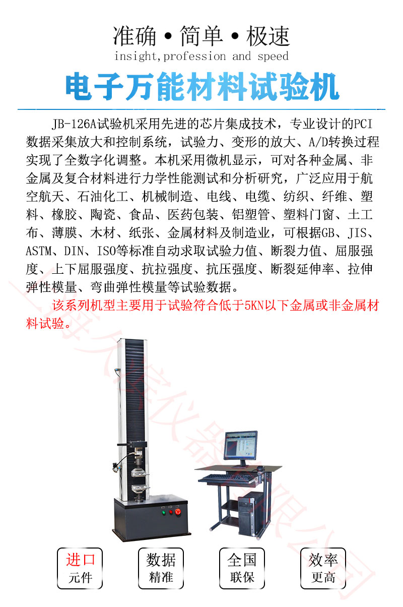 該試驗(yàn)機(jī)采用芯片集成技術(shù),專業(yè)設(shè)計(jì)的PCL數(shù)據(jù)采集放大和控制系統(tǒng),試驗(yàn)力、變形的放大、A/D轉(zhuǎn)換過程實(shí)現(xiàn)了全數(shù)字化調(diào)整。本機(jī)采用微機(jī)顯示,可對(duì)各種金屬、非金屬及復(fù)合材料進(jìn)行力學(xué)性能測(cè)試和分析研究,廣泛應(yīng)用于航空航天、石油化工、機(jī)械制造、電線電纜、紡織、纖維、塑料、橡膠、陶瓷、食品、醫(yī)藥包裝、鋁塑管、塑料門窗、土工布、薄膜、木材、紙張、金屬材料及制造業(yè),可根據(jù)GB、JIS、ASTM、DIN、ISO等標(biāo)準(zhǔn)自動(dòng)求取試驗(yàn)力值、斷裂力值、屈服強(qiáng)度、上下屈服強(qiáng)度、抗壓強(qiáng)度、抗拉強(qiáng)度、斷裂延伸率、拉伸彈性模量、彎曲彈性模量等試驗(yàn)數(shù)據(jù)。