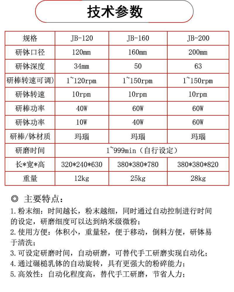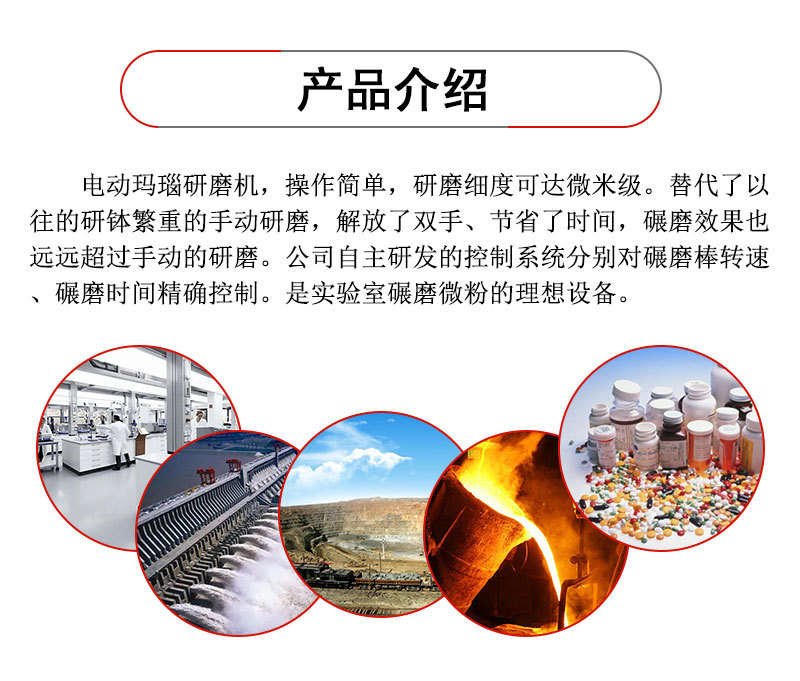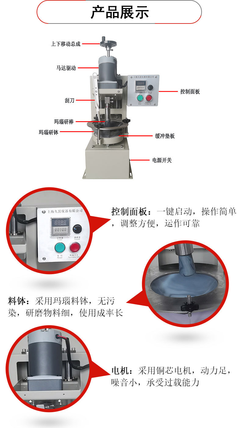 電動(dòng)瑪瑙研磨機(jī),具有操做簡(jiǎn)單,研磨細(xì)度可達(dá)微米級(jí)。替代了以往的研缽繁重的手動(dòng)研磨,解放了雙手、節(jié)省了時(shí)間,碾磨效果也遠(yuǎn)遠(yuǎn)超過手動(dòng)的研磨。