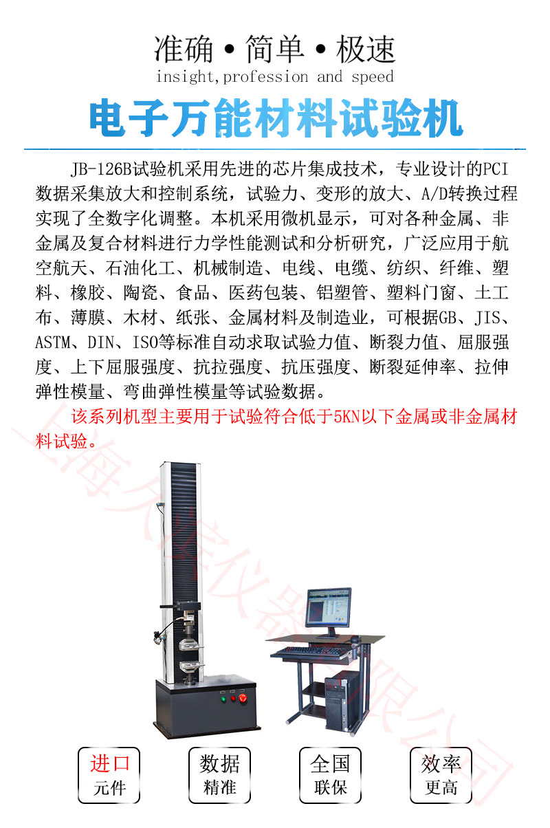 該試驗(yàn)機(jī)采用xiān進(jìn)的芯片集成技術(shù),專業(yè)設(shè)計(jì)的PCL數(shù)據(jù)采集放大和控制系統(tǒng),試驗(yàn)力、變形的放大、A/D轉(zhuǎn)換過程實(shí)現(xiàn)了全數(shù)字化調(diào)整。本機(jī)采用微機(jī)顯示,可對各種金屬、非金屬及復(fù)合材料進(jìn)行力學(xué)性能測試和分析研究,廣泛應(yīng)用于航空航天、石油化工、機(jī)械制造、電線電纜、紡織、纖維、塑料、橡膠、陶瓷、食品、醫(yī)藥包裝、鋁塑管、塑料門窗、土工布、薄膜、木材、紙張、金屬材料及制造業(yè),可根據(jù)GB、JIS、ASTM、DIN、ISO等標(biāo)準(zhǔn)自動求取試驗(yàn)力值、斷裂力值、屈服強(qiáng)度、上下屈服強(qiáng)度、抗壓強(qiáng)度、抗拉強(qiáng)度、斷裂延伸率、拉伸彈性模量、彎曲彈性模量等試驗(yàn)數(shù)據(jù)。