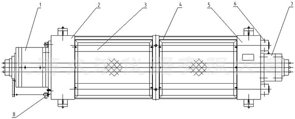 1、圖1為試驗機整機外觀示意圖。該機由主機部分、測量控制系統(tǒng)、液壓張拉設(shè)備及防護裝置組成。