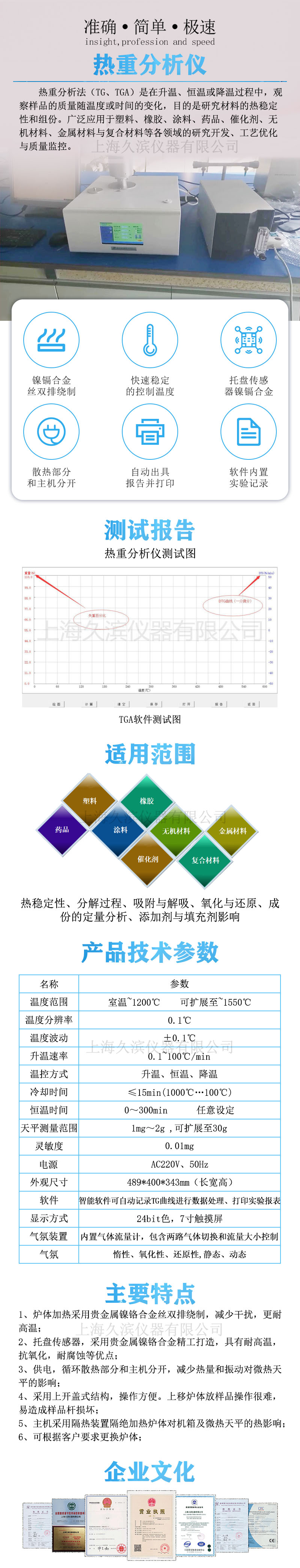 熱重分析法(TG、TGA)是在升溫、恒溫或降溫過(guò)程中,觀察樣品的質(zhì)量隨溫度或時(shí)間的變化,目的是研究材料的熱穩(wěn)定性和組份。廣泛應(yīng)用于塑料、橡膠、涂料、藥品、催化劑、無(wú)機(jī)材料、金屬材料與復(fù)合材料等各領(lǐng)域的研究開(kāi)發(fā)、工藝優(yōu)化與質(zhì)量監(jiān)控。