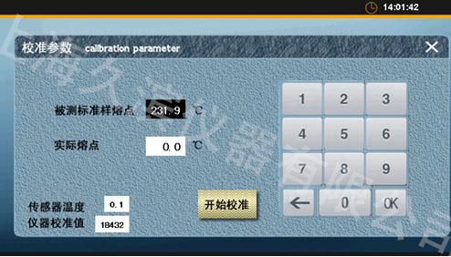 a. 如圖1.6點擊【溫度值】變成黑底白字,點擊數(shù)字鍵,輸入溫度b. 【被測標(biāo)準(zhǔn)樣熔點】為標(biāo)準(zhǔn)物的理論熔點值,【實際熔點】被測標(biāo)準(zhǔn)物的實際測試的熔點值。c. 輸入完畢點擊【開始校準(zhǔn)】后,重啟軟件及儀器,注意先關(guān)閉軟件,然后再關(guān)閉儀器電源開關(guān),即校準(zhǔn)完畢。d. 若無修改,或者不校準(zhǔn),則點擊顯示屏右上角 關(guān)閉對話框。