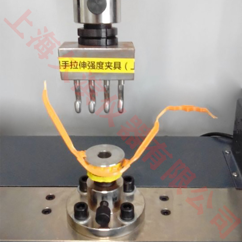 隨著時代的發(fā)展PET桶裝食用油及類似大PET瓶裝產(chǎn)品越來越多,均需要使用塑料提環(huán),提環(huán)的強度質(zhì)量也需要監(jiān)控和控制,因此久濱儀器針對此設(shè)計出塑料提環(huán)拉伸強度的儀器裝置。